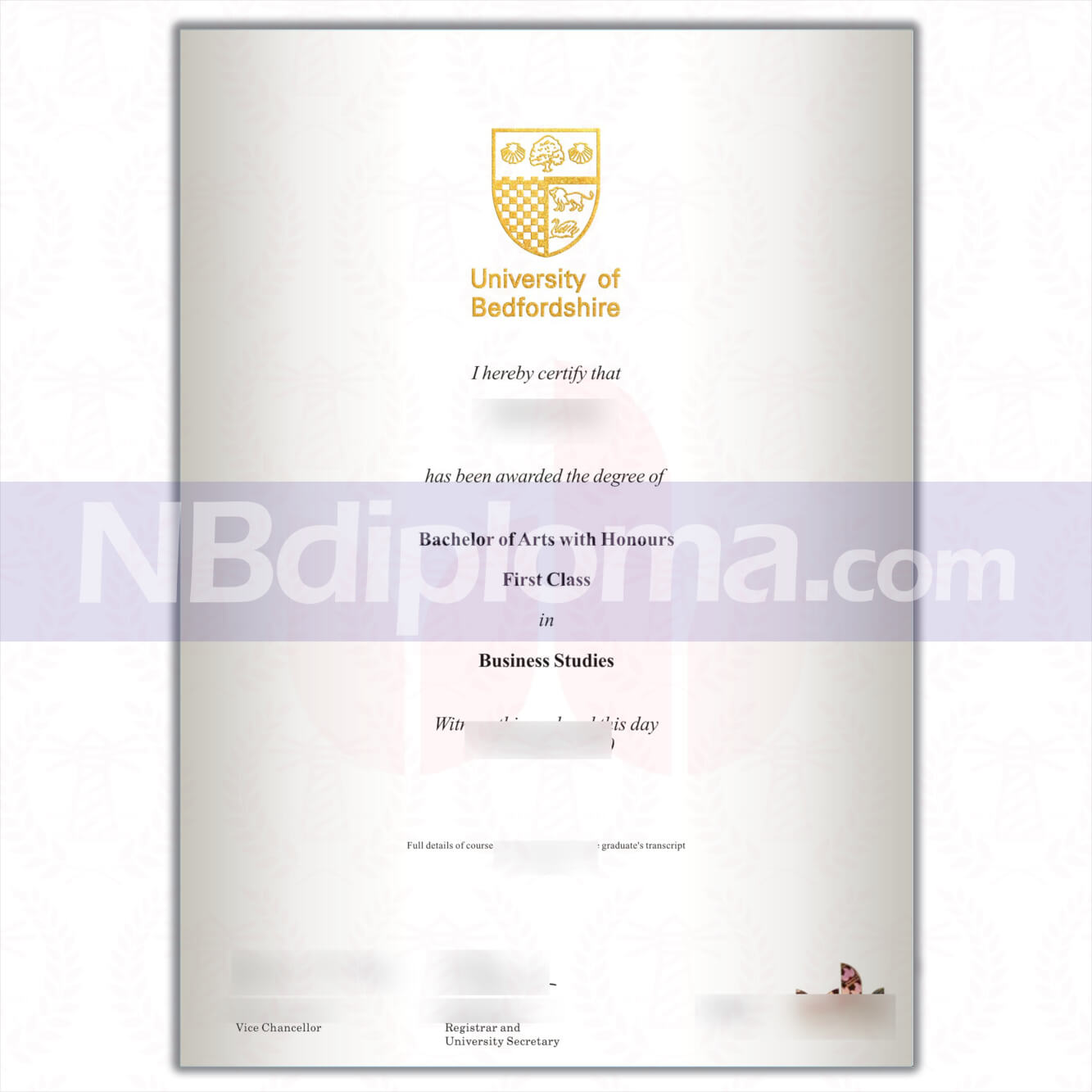 University of Bedford diploma, University of Bedford diploma and transcript purchase, British diploma purchase from the UK university diploma layout