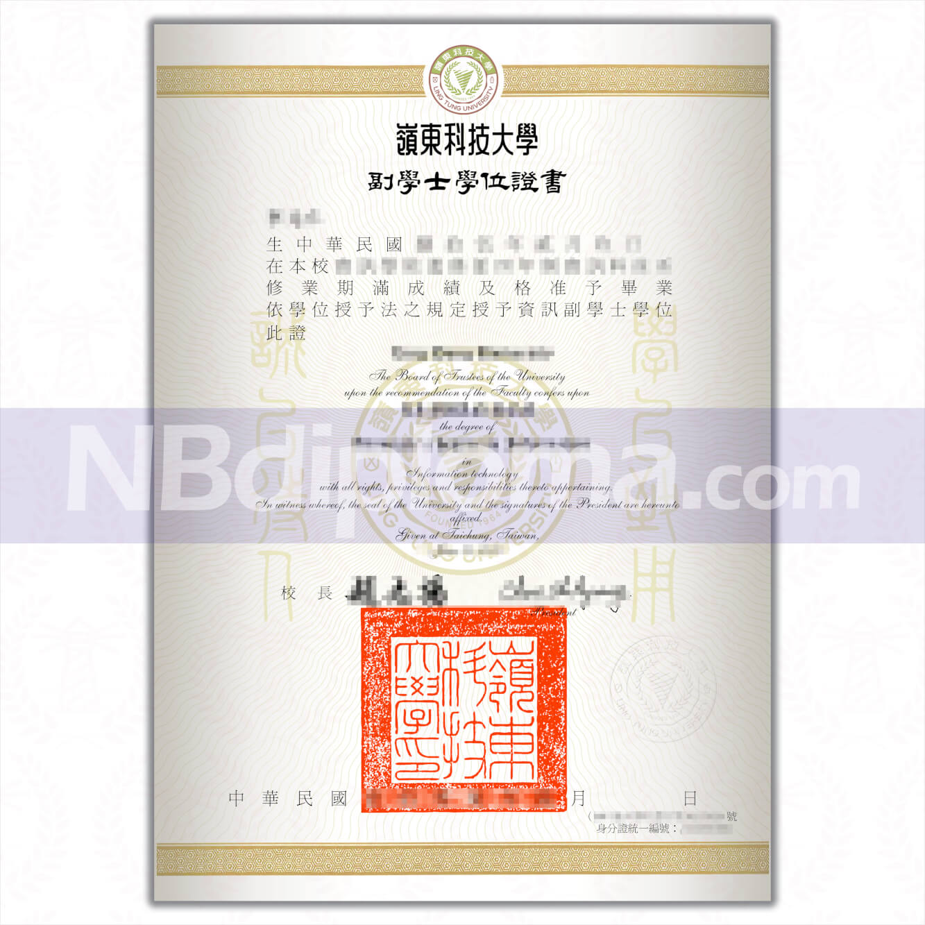 嶺東科技大學畢業證書副學士學位證書岭东科技大学,校本部位于台中市南屯区,创立于1964年,为广东梅州市梅县区乡贤故国大代表蔡亚萍博士及现任董事长黎明博士伉俪所独资创办。