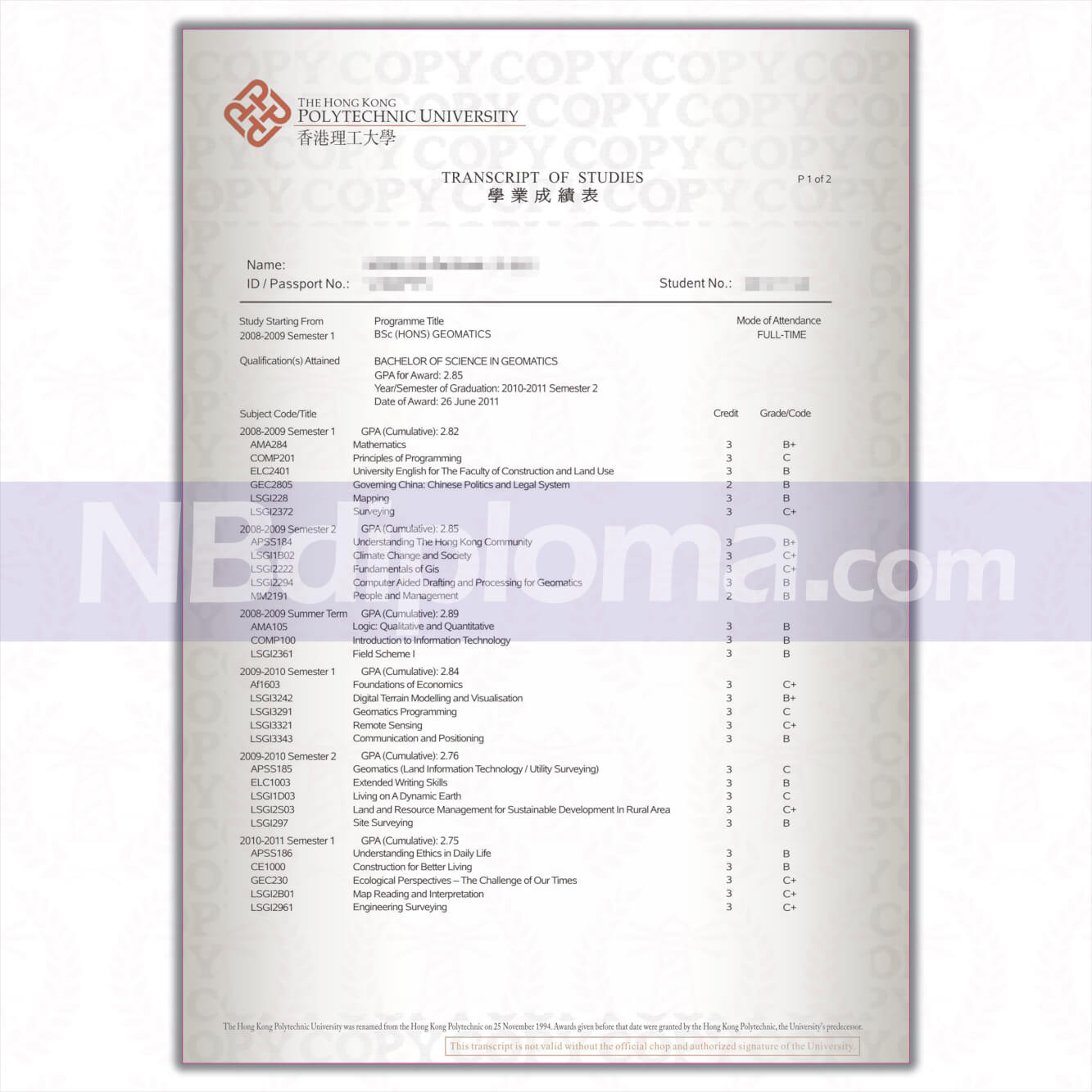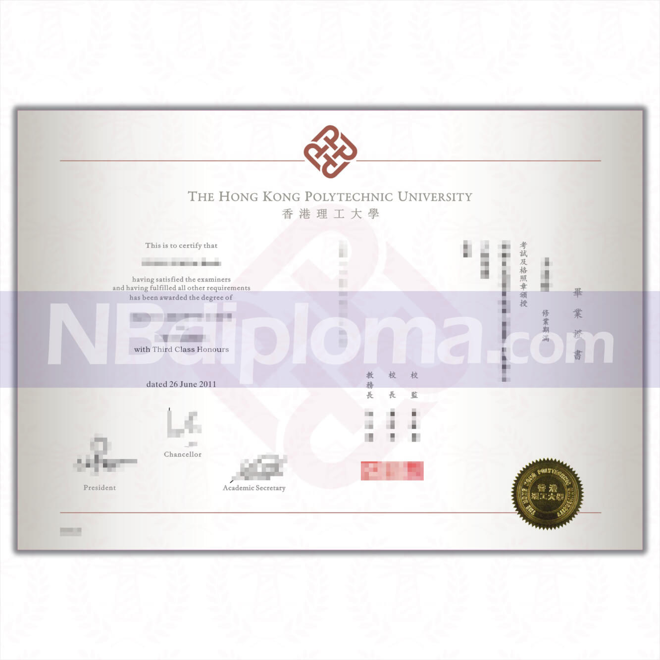 香港理工大学毕业证书,香港理工大学成绩单,香港理工大学学位证书.香港理工大学,是一所坐落于香港九龙红磡湾的公立应用研究型大学。理大前身为香港官立高级工业学院,在 1937 年创立,并于1994年正名为香港理工大学,是八间大学教育资助委员会(教资会)资助的法定公立大学之一。